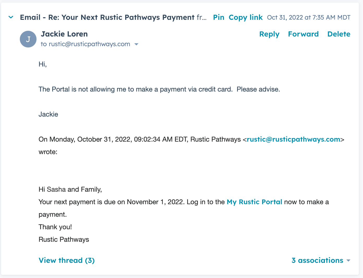 - Create a follow-up task for yourself to ensure the credit card link was sent to the client.